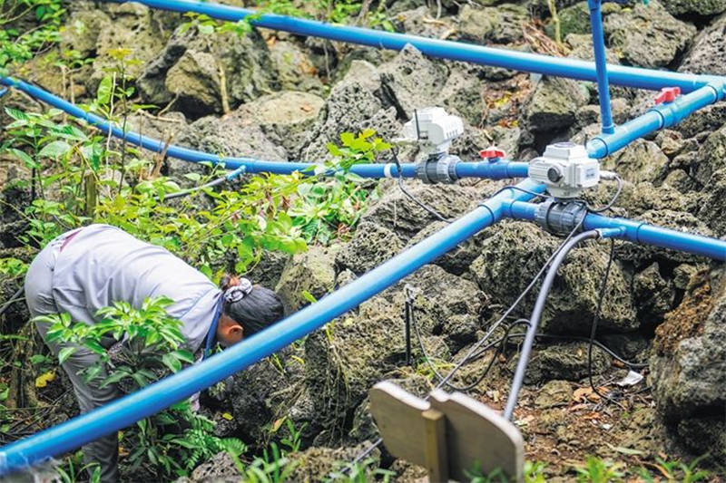r“相对于传统的灌溉施肥,智能水肥一体化设备不但节省人力,还能实现节水节肥。”海口市秀英区永兴镇荔枝协会会长肖植玉介绍道。在海口秀英区永兴镇建中村南岛基地,智能水肥一体化灌溉系统、害虫物理消杀设备、飞防植保作业等高科技耕作场景随处可见。如今这种“科技范儿”的种植模式,已成为海南热带水果产业的新常态。